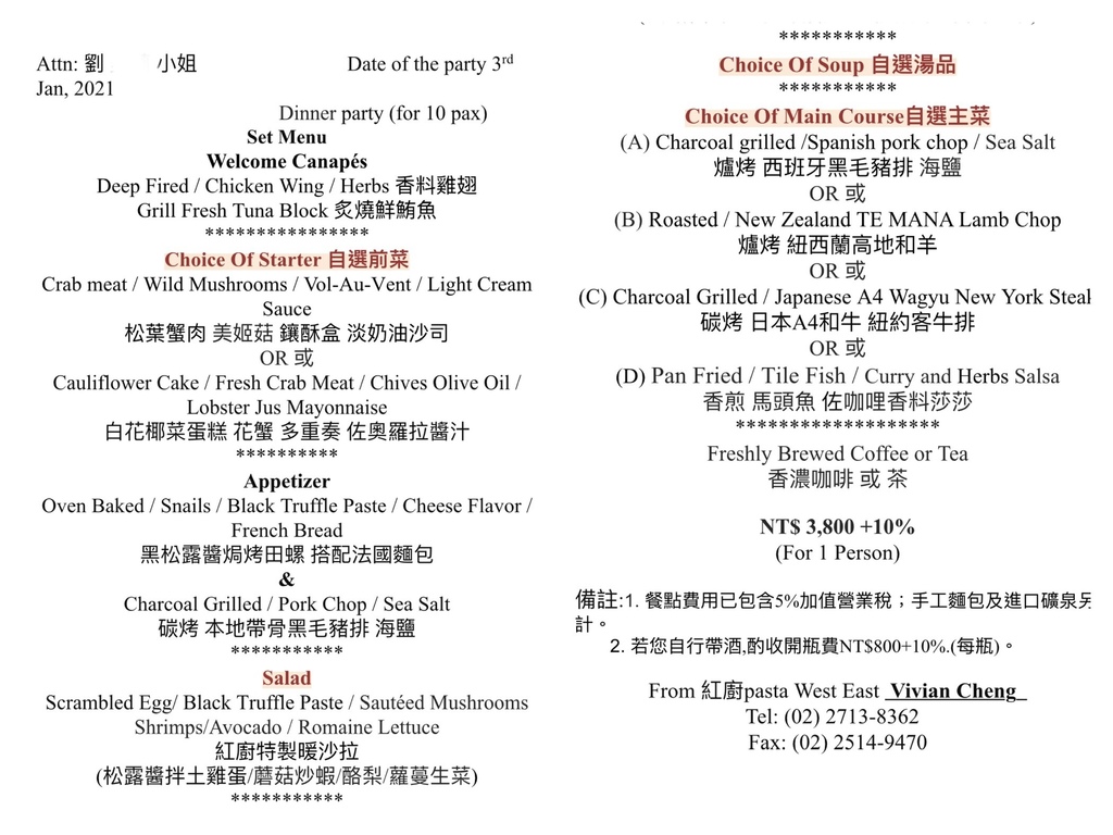 特別請經理和主廚設計菜單,搭配得很棒,讓大家都吃得好開心!