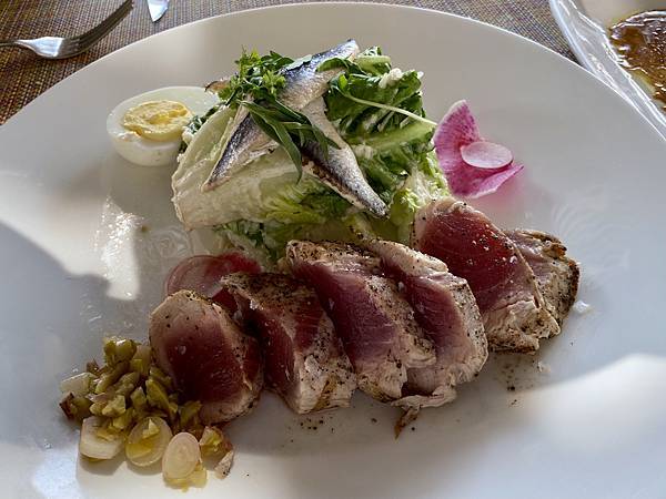 烤黃鰭鮪魚沙拉,只在外圈做燒烤