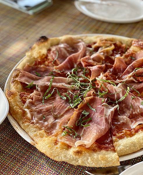 大量的蕃茄醬基底加入了燻火腿和義式臘腸,