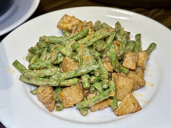鹹蛋黃經過大火快炒依附在四季豆上,