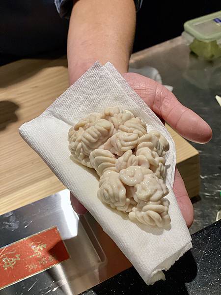 以鑄鐵鍋燒開一鍋熱水,將北寄貝燙熟,