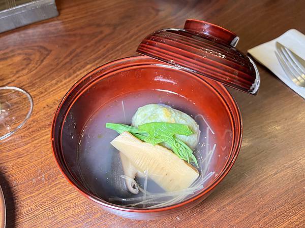 日本干貝山藥鱈魚丸配上台灣的冬筍、松本菇