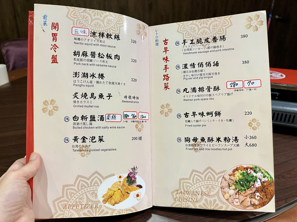 提供台灣味的手路菜、酒家菜、阿舍菜,