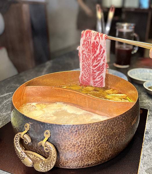牛小排放入麻辣鍋中涮至5分熟,口感最佳!