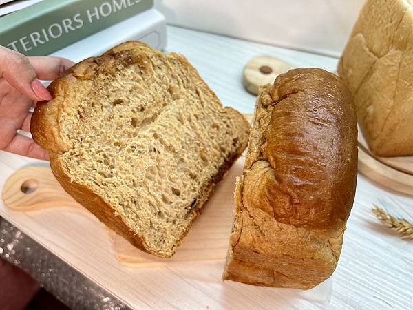 一口咬下,吐司柔軟綿密中帶點微甜的黑糖香,