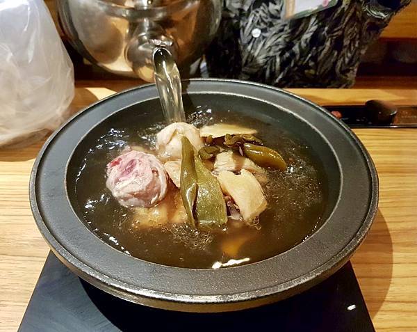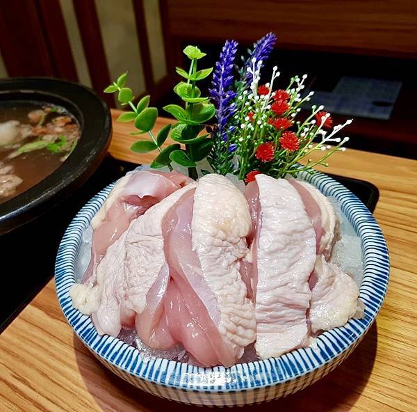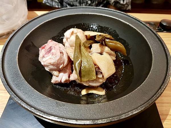送出時,鍋內已有切好的雞腿肉及剝皮辣椒,