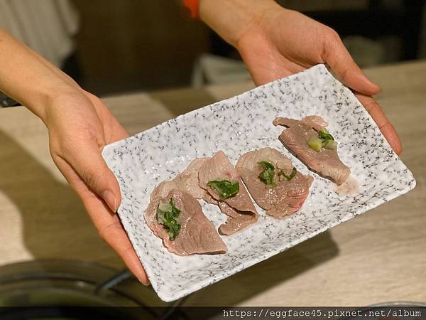 五分熟的薄片牛舌,搭配鹽蔥最對味!