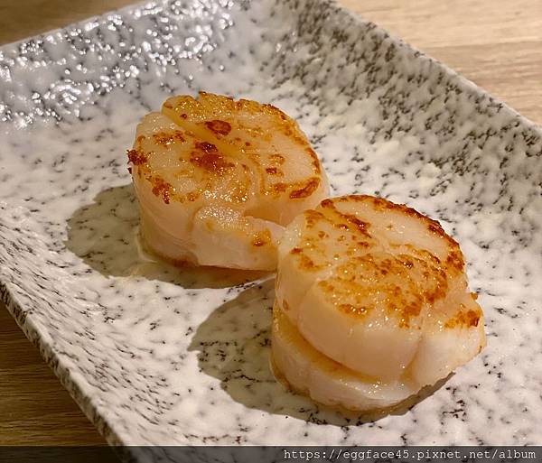 生食級的北海道大干貝,只要烤到雙面微焦即可,