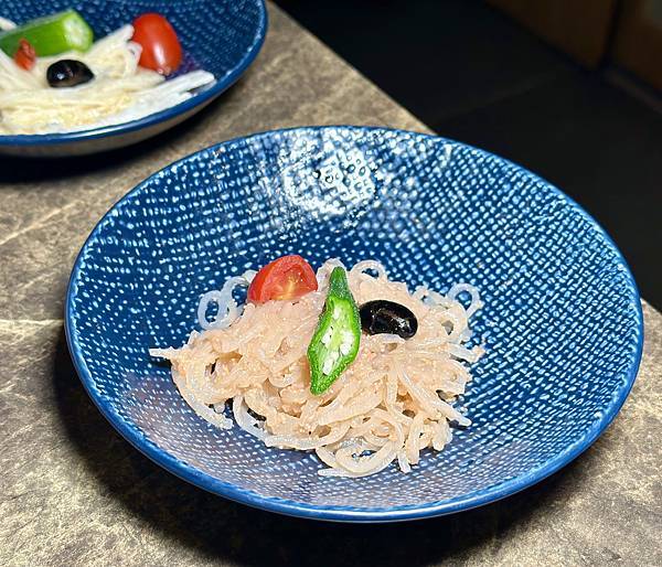 這道是蒟蒻絲加入明太子拌炒而成的涼菜,