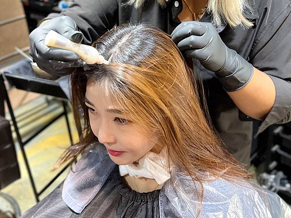 確定要染的髮色後,會先進行頭皮隔離的步驟,