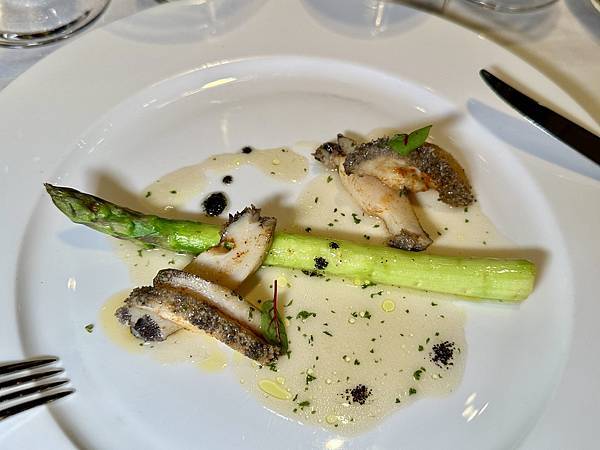 【嫩煎葉門亞丁灣螫蝦佐黑松露蛋】