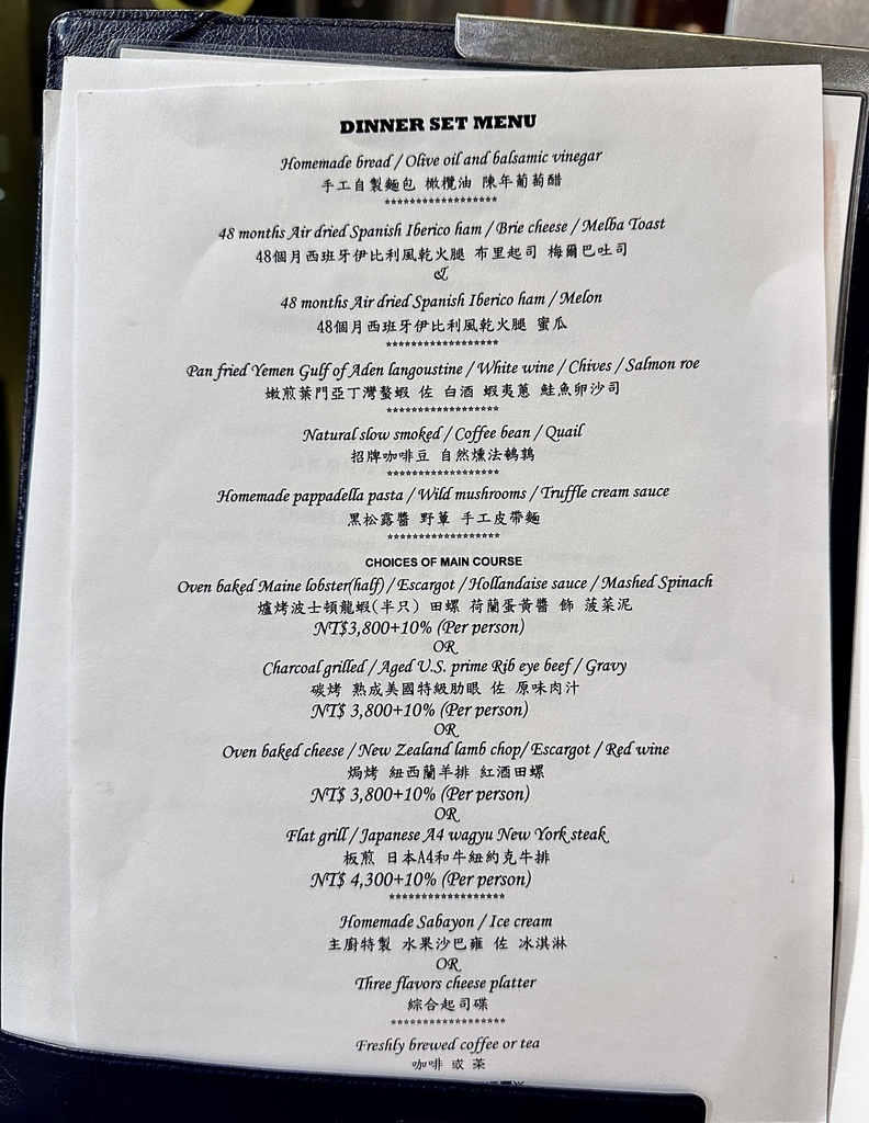 包含開胃菜、前菜、義大利麵/燉飯、排餐…等。