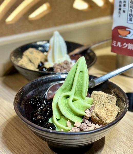 這裡提供牛奶、抹茶,兩種口味的霜淇林,