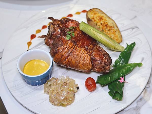 【爐烤德國豬腳襯鳳梨酸菜佐蜂蜜芥末醬】