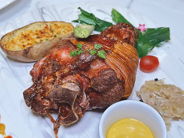- 爐烤德國豬腳襯鳳梨酸菜佐蜂蜜芥末醬$880