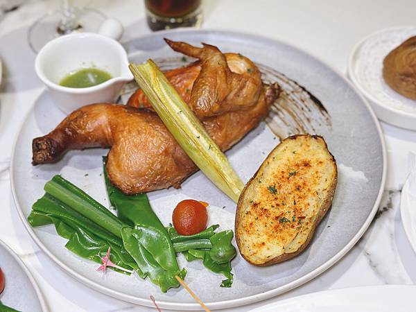 - 馥境祕製香料烤半雞佐酸椒醬$580