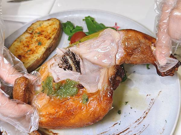 ▼烤雞吃起來皮薄肉嫩又多汁,