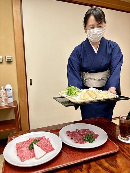 套餐包含:前菜、和牛、野菜、越光米飯、味噌湯、漬菜、水果