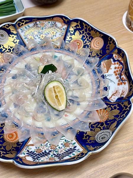 河豚生魚片是非常低脂且帶有嚼勁的唷!