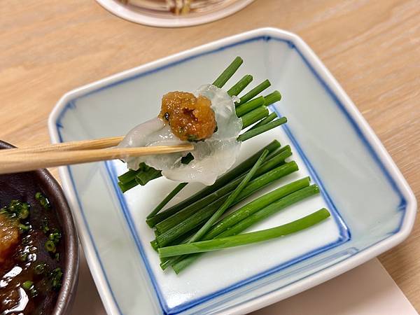 搭配日式酸甜醬汁和蔥花和辣蘿蔔泥,