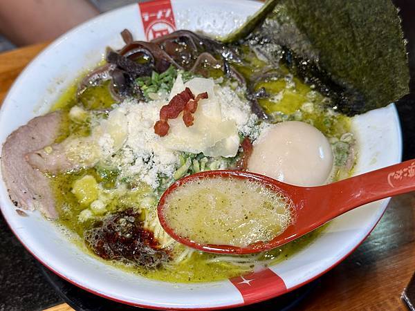 豚王湯頭搭配新鮮羅勒、橄欖油精製而成的風味油,