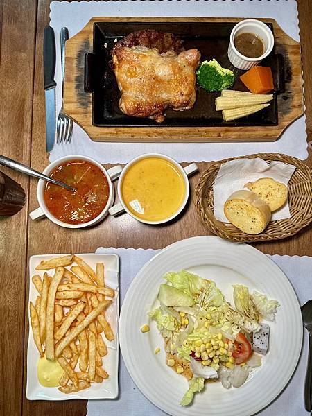 - 超值全餐:麵包+沙拉+酥皮濃湯+主餐+甜點+飲料 (4選3)