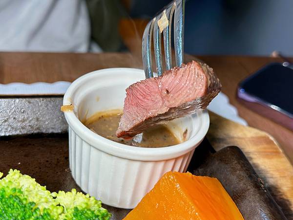 ▼店家建議7分熟,我點了5分熟,可能因為鐵板持續加溫,