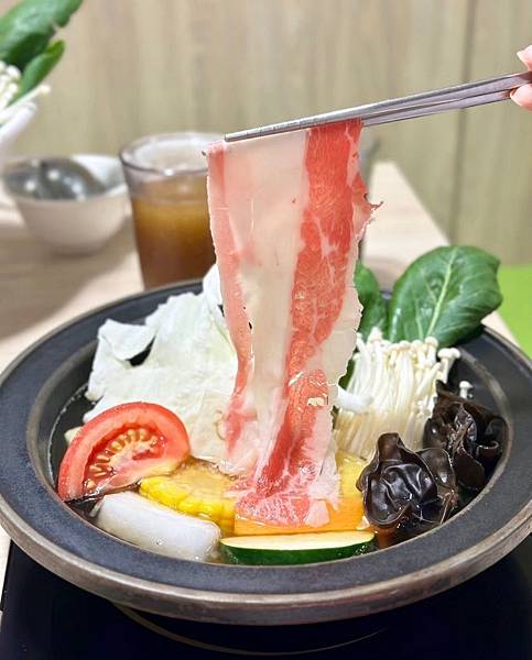 薄片的梅花豬,涮鍋後吃起來不乾柴,