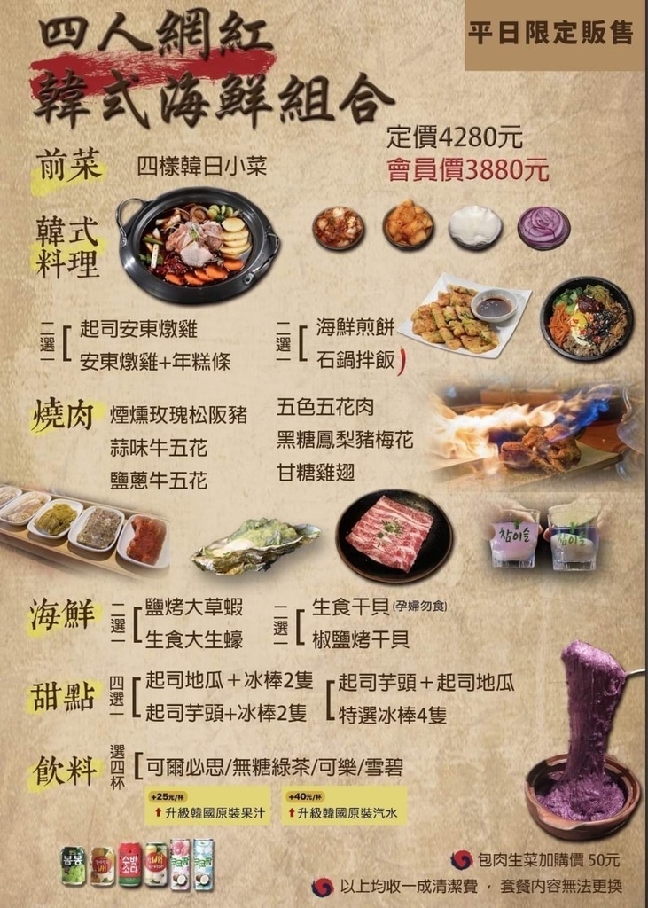 【四人網紅韓式海鮮組合】$4280/3880(會員)