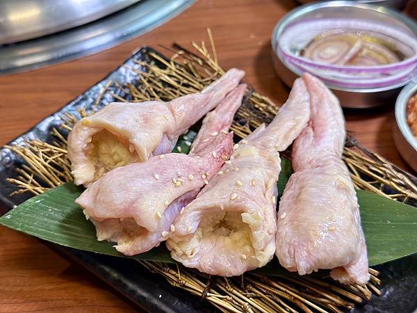 去骨的雞翅裡,包入起司、玉米粒、德國火腿,