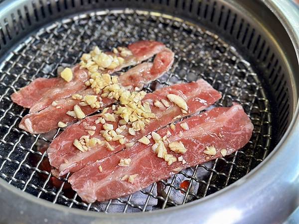 搭配滿滿的蒜末、鹽蔥炙烤,