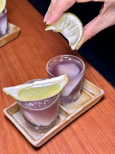 ▼吃之前,需先擠上一些檸檬汁入杯內,