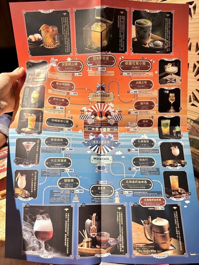 以沉浸式火車餐酒體驗為主題,設計出大正浪漫風的東方快車茶酒列車風貌,進駐信義新天地A11館;以懷石料理的高規格工序及手法,融合不同文化特色的料理手法及食材,設計出一道道的跨界和洋食;以茶入酒,結合日本各處在地文化特色,調製出一杯杯的日系茶酒飲,連無酒精mocktail都極俱風格特色,絕對符合列車餐茶酒主題,開往各地品嚐美食、美酒。