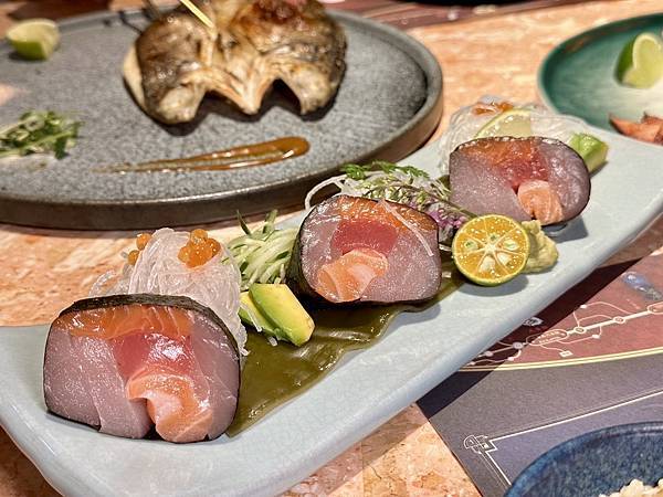 壽司捲中包著鮭魚、鮪魚、旗魚,