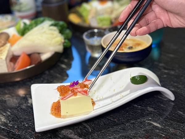 自製蛋豆腐上,有滿滿的蟹肉棒、鮭魚卵,