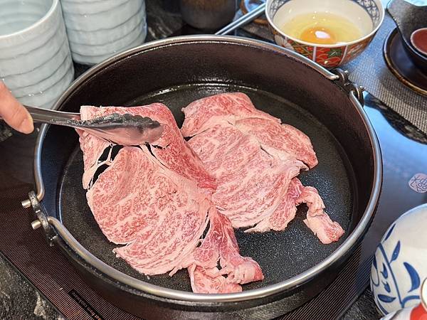 ▼橋山壽喜燒使用專門的鑄鐵鍋煮具,