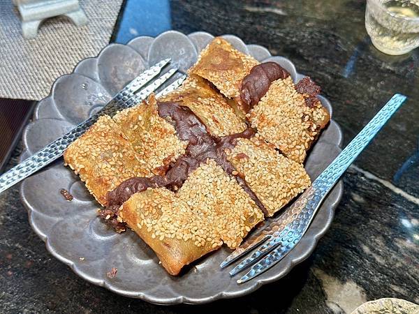 酥香的薄餅裡,包著紅豆沙餡和麻糬,