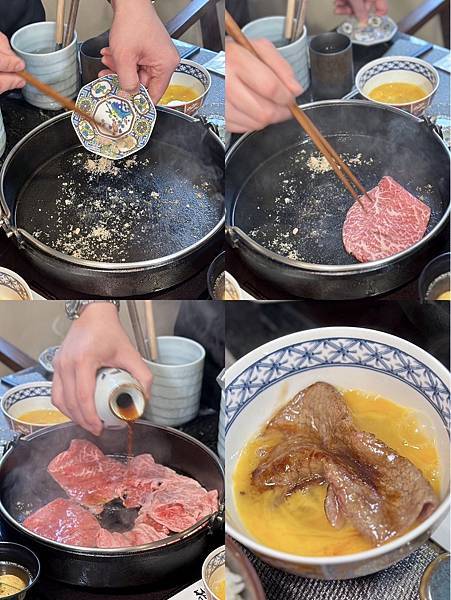 再淋上一點壽喜燒醬,讓牛肉兩面均勻受熱至最佳熟度後,