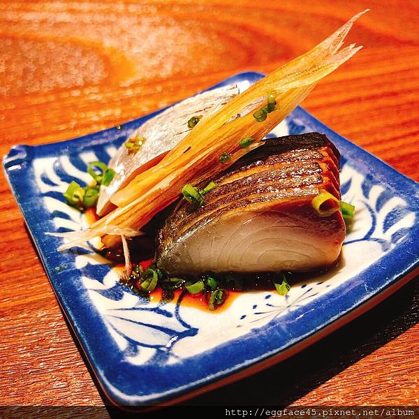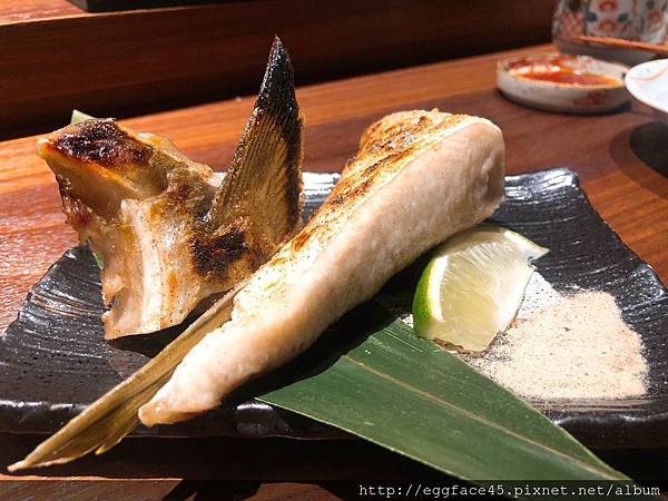 表皮烤的焦香的青甘魚下巴,鎖住了魚肉鮮嫩,
