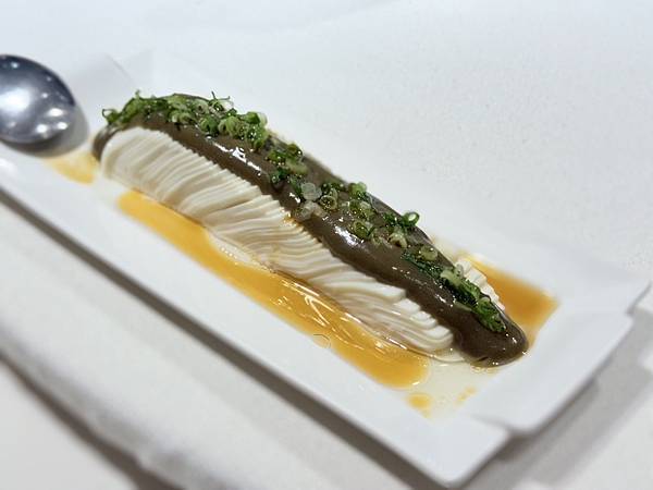▼獲得500盤的喜相逢招牌小菜「皮蛋豆腐」,將豆腐薄切可見刀工,淋上打成泥的皮蛋後調味,老闆找到以雞蛋做成的皮蛋,味道不腥而是香的,造型創意,口感細膩,風味獨特,不吃皮蛋也會愛上,也大概沒有人會想到這麼做。