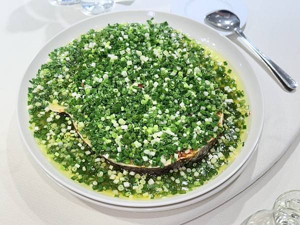 使用26腰的阿拉斯加圓鱈,肉質肥美鮮甜 (這麼肥美的鱈魚有錢都買不到,可見店家是十分用心在找食材),搭配喜相逢自製剁椒、橄欖油和滿版的三星蔥,呈現微辣鮮香的滋味,與坊間「跺椒」不同方式的表現,使用橄欖油更是調味獨到,食材的精選和巧妙的調味融合令人印象深刻!