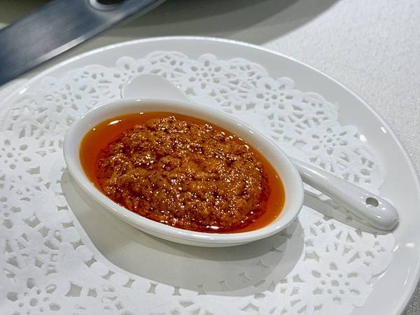 這道菜以手工拆解的蟹肉和魚翅為主要食材,還有蛋酥(桂花),呈現出鮮美的風味。特別的是,做成像蛋炒飯又沒飯粒的料理,老板花兩天準備,味道真的是太好吃了!若喜好辣味,可加入喜相逢自製辣椒醬,由魔鬼椒、朝天椒、大紅袍三種辣椒炒出來的,帶來辣度與香氣,風味更提升!