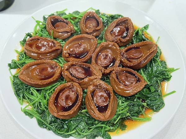 選用優質乾鮑魚,經過精心發泡和烹調,搭配新鮮的有機芥藍苗,呈現出鮑魚的鮮嫩與芥藍的清脆,兩者相得益彰。