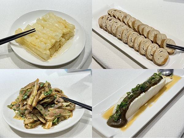 檸檬苦瓜、麻辣素雞、麻辣耳絲、皮蛋豆腐。