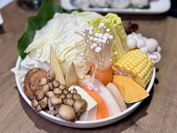 多樣的新鮮時蔬,搭配雞湯火鍋,營養均衡又好吃。