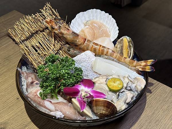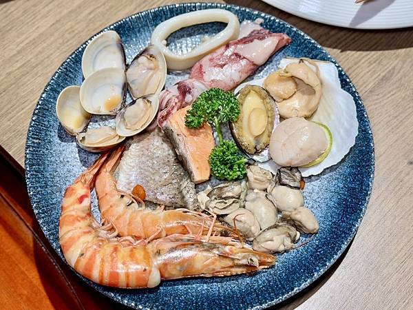 鮮花枝、鮭魚菲力、白蝦、鮮蚵、蛤蠣、鮮小卷、明蝦、鱸魚、干貝、鮮凍鮑、大扇貝