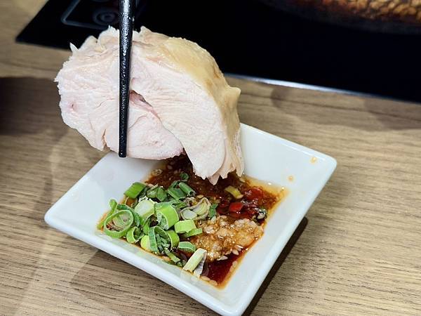 涮入雞湯鍋煮後,軟嫩香甜帶點膠質感,