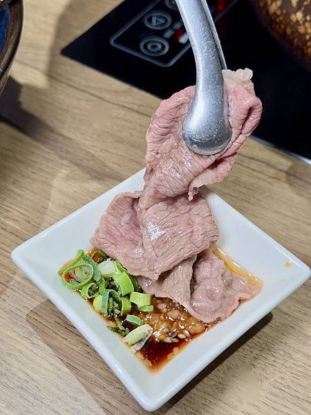 涮進鍋中後,牛小排瞬間吸收湯底的精華,