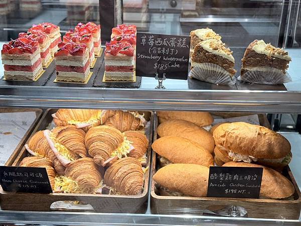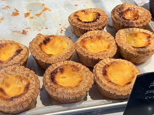 透過玻璃櫃看著滿滿的蛋塔、可頌、甜點,超療癒!