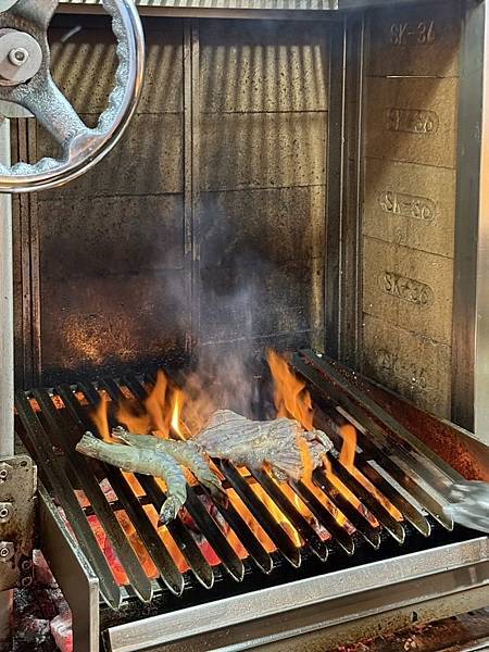 ▼主廚將海鮮及肉品放入磚窯內直火燒烤,熱焰的大火帶著微微飄散的龍眼木香氣息,悄悄融入食材中,呈現出肉品的自然紋理和精緻色澤,創造出無法複製的獨特迷人風味